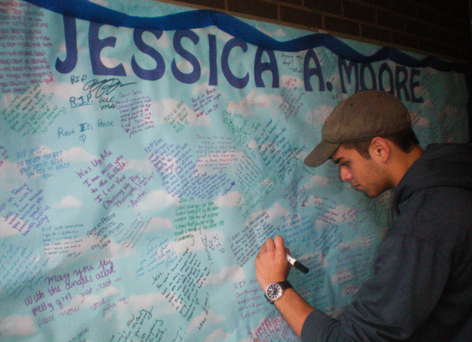 According to students at the scene, Moore died after she threw herself in front of a wounded classmate.