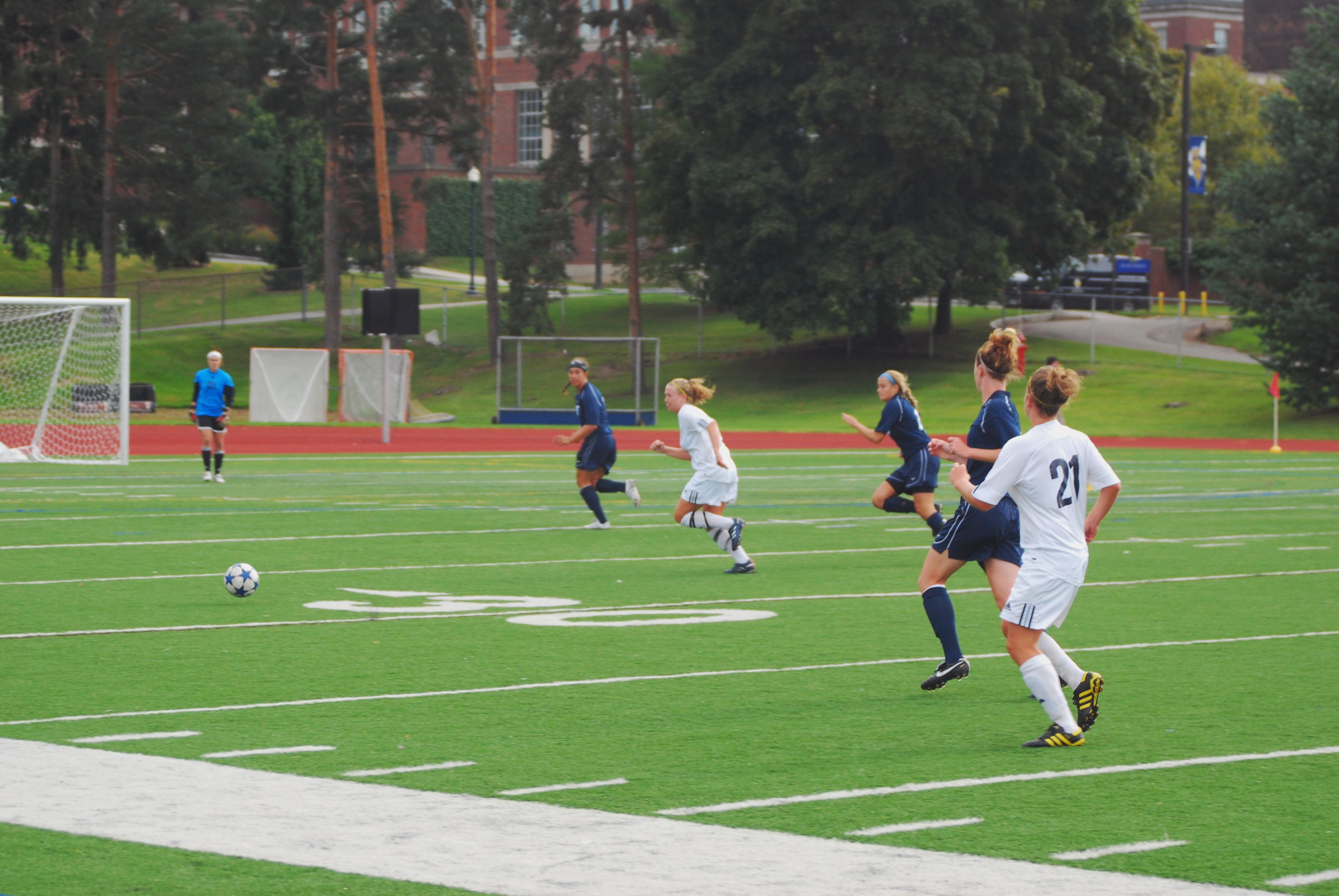 Varin broke a 0-0 deadlock in the 64th minute when she took a long shot from the left side of the field. Brandeis goalkeeper Francine Kofinas was unable to jump high enough to knock the ball away, and the shot snuck just underneath the crossbar for what turned out to be the game winner.