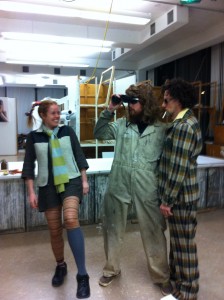 The room was casually lit as people entered and mingled around a table full of delicious refreshments. The food could not take attention away from “decorating” the room with the guests’ presence. One such person was a tall man wearing a green, blue, and grey squared suit and a pair of nice white shoes that have been out of production for at least three decades. This man was later identified as Associate Professor of Art and Art History Allen Topolski. A woman in roller skates wearing a silver helmet with an attached video camera was also in attendance. Her main goal throughout the event was to make sure guests tried every single treat on the table. Later on, she gave away champagne flutes. There was another man known only as “Mechanic.” He wore a jumpsuit and sported crazy long, curly hair. Another young woman, who wore multicolored stockings, fancy clothes, and several twisted braids, completed the rag-tag group.