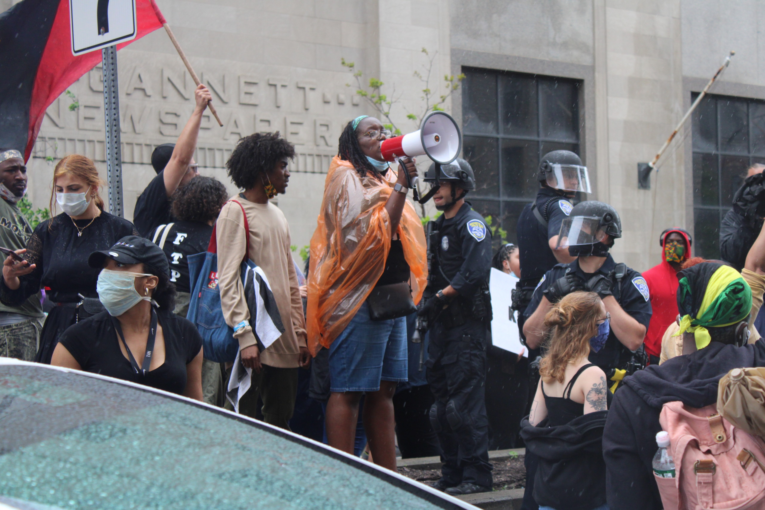 In between treks through E Main St and other parts of central downtown, crowds gathered in front of the Rochester Police Station and the public library to bring local context to the national crisis of police brutality.