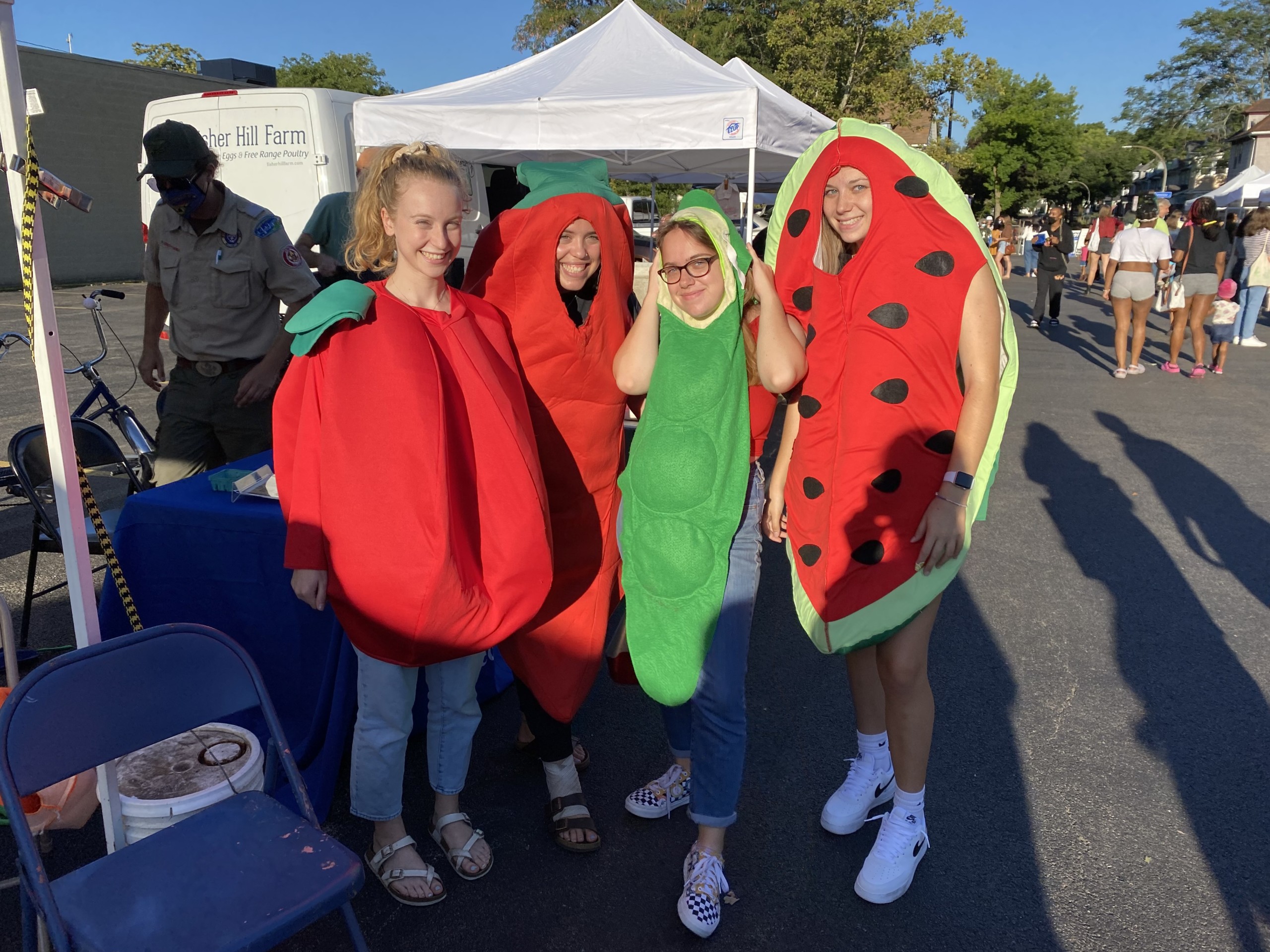 College Night included a free tote, a raffle ticket for gift cards to the market or Barnes & Noble, and a $3 coupon. If you’re weird like my roommates and I, you could post a picture of yourself in the available vegetable and fruit costumes to get a $5 credit for the market. You could also be boring, not wear them and post anything on social media to get the voucher.