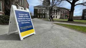 Students arriving to campus Friday morning were met with signs alerting them of the revived mask mandate.