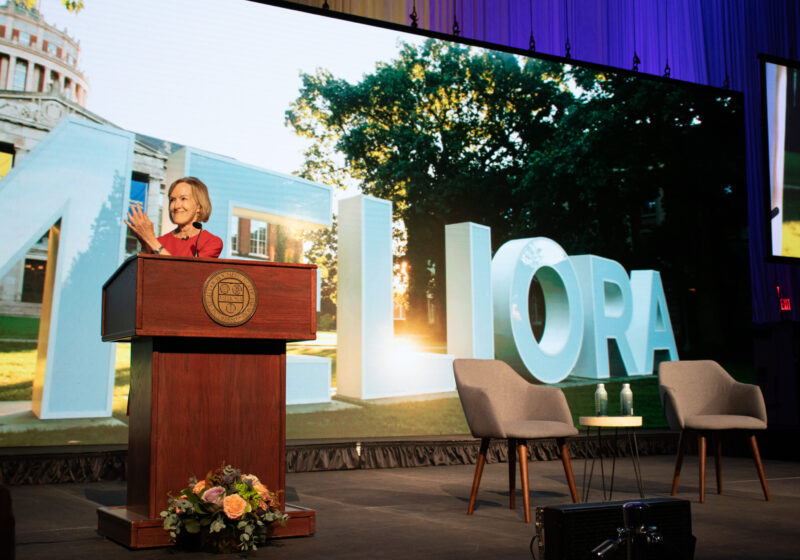 At her keynote address headlining Meliora Weekend, Judy Woodruff, PBS senior correspondent who has worked prominently in television news since 1976, spoke on the polarized state of the nation, diving into the good, the bad, the ugly — and the future — of American politics.