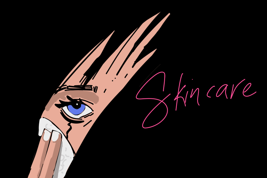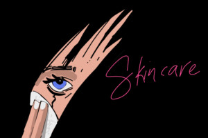 A make up wipe being wiped over part of a face, with the word skincare next to it