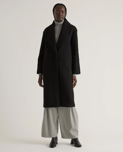 Pictured: Quince 100% Merino Wool Shawl Collar Long Coat