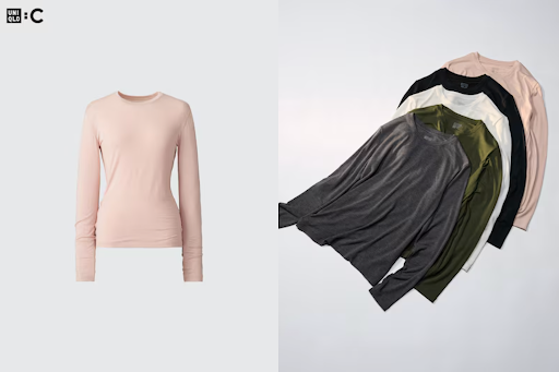 The UNIQLO HEATTECH Shirt side-by-side with the Intissimi Boat Neck Shirt.