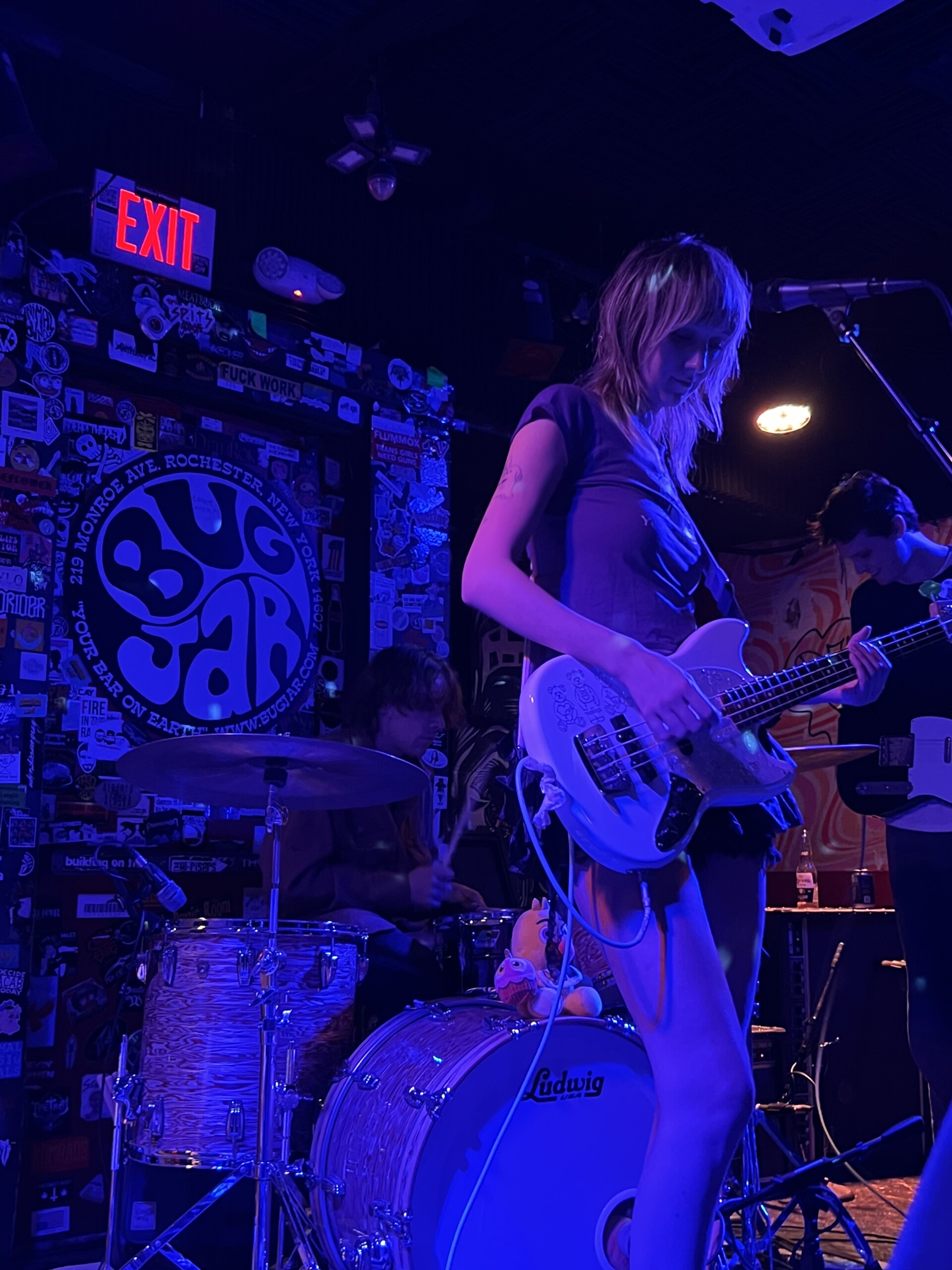 The crowd pushed to the front as Kassie Krut struck their set, and feeble little horse set theirs up. Anticipation only grew as Lydia Slocum fiddled with her bass and Jake Kelly stood in the doorway blowing smoke over his shoulder, until finally they picked up their instruments and filled the Bug Jar with noisy sound and biting lyrics. They brought a raw unpredictable energy that vastly differed from their openers, starting with the aforementioned fan favorite, “Freak.”